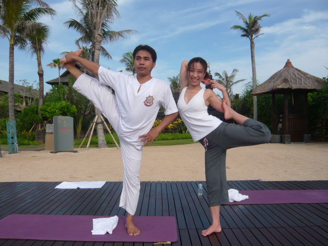 ホテルのプログラムでのヨガクラス。